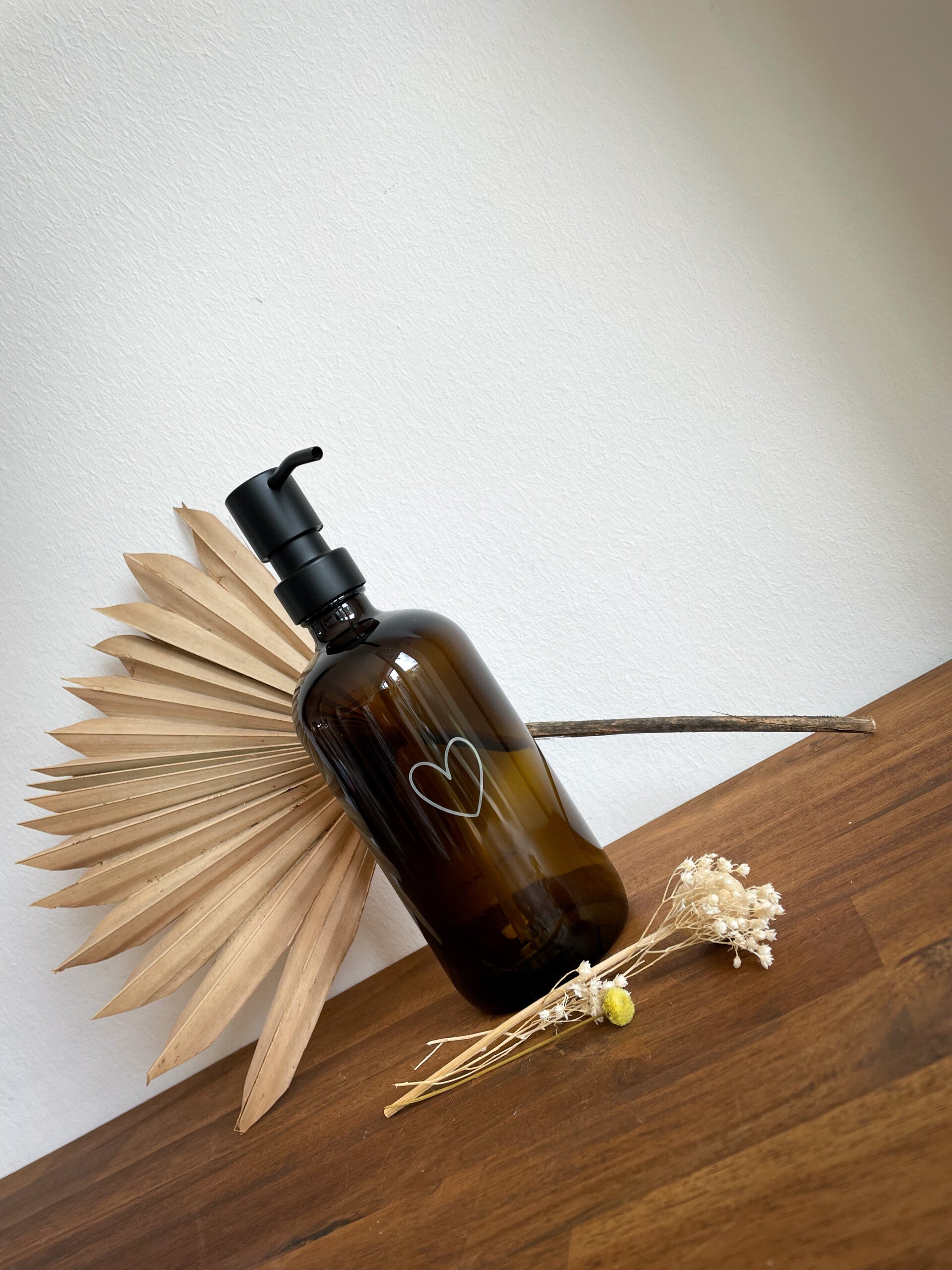 - Material: transparentem Glas mit Pumpverschluss aus Metall
