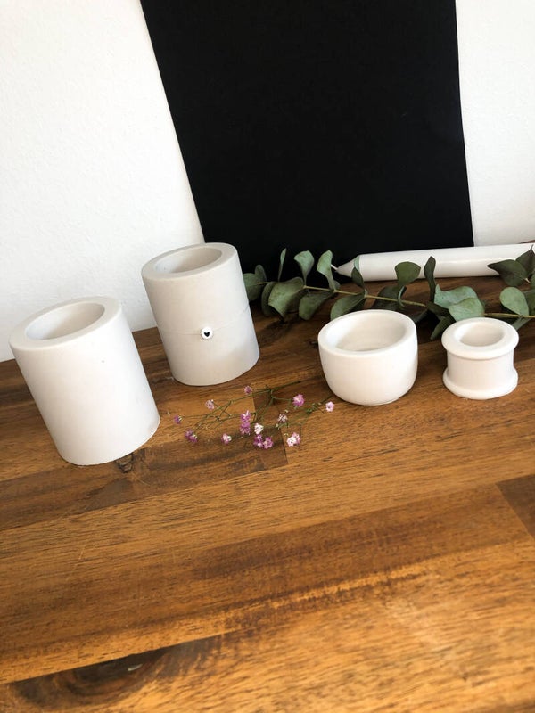 Der Kerzenständer, kann auf Grund der Handfertigung kleine Abweichungen vom Original Foto aufweisen. Aufgrund der Beschaffenheit des Betons/Gipsgemisches können Unregelmäßigkeiten, wie zum Beispiel kleine Bläschen auftreten.
